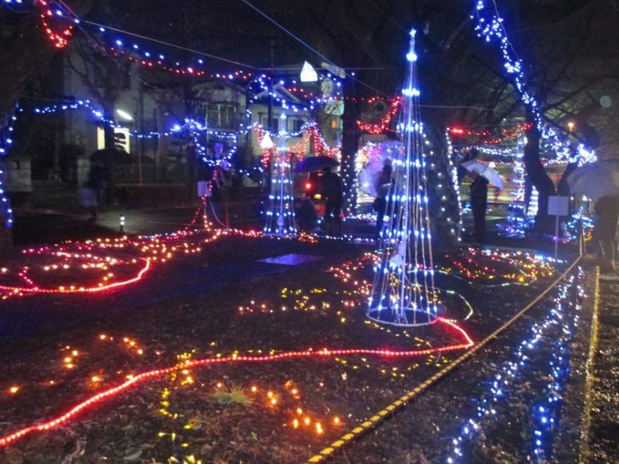 カウントダウンの合図で点灯し、集まった子供達には蛍光グッツをプレゼント!