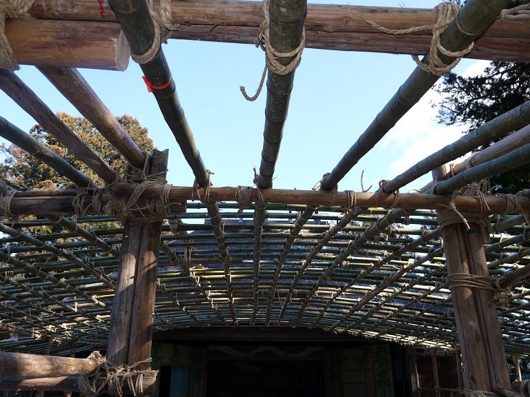 約300年前から受け継がれているこの技法は、田峯観音地狂言舞台小屋掛技術と言われ、設楽町指定文化財に登録されています。
