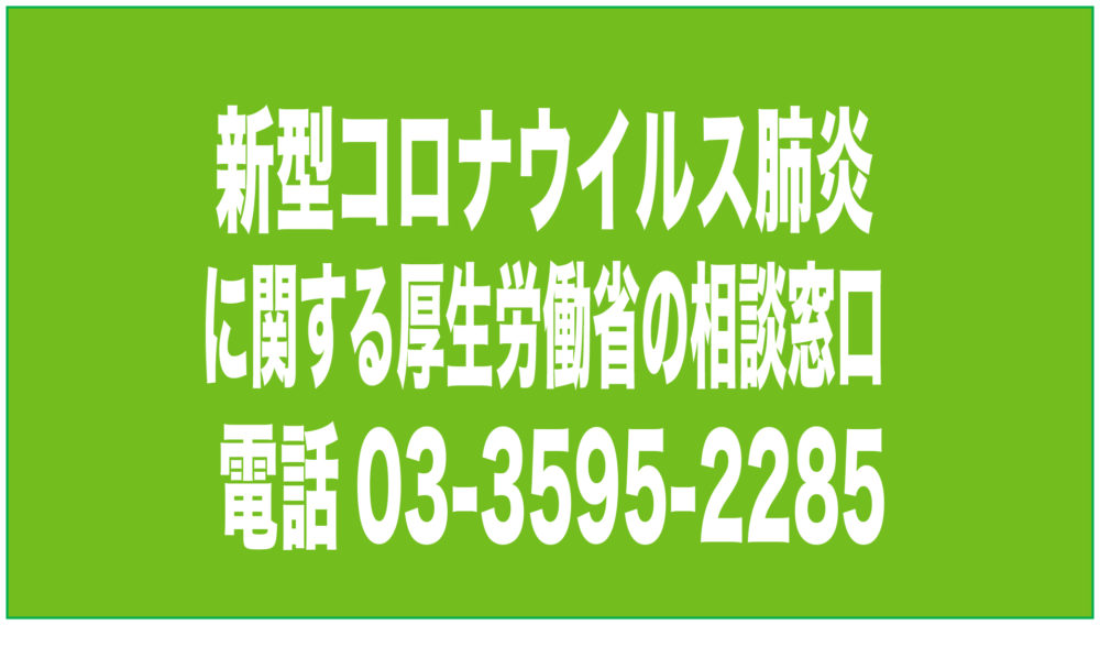 新型コロナウイルス肺炎に関する厚生労働省の相談窓口 電話03-3595-2285