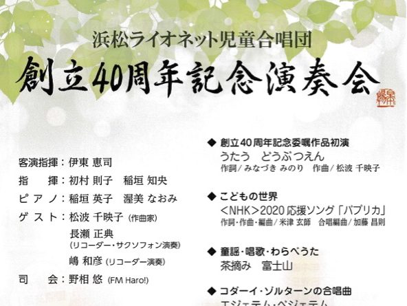 《公演中止》浜松ライオネット児童合唱団 創立40周年記念演奏会