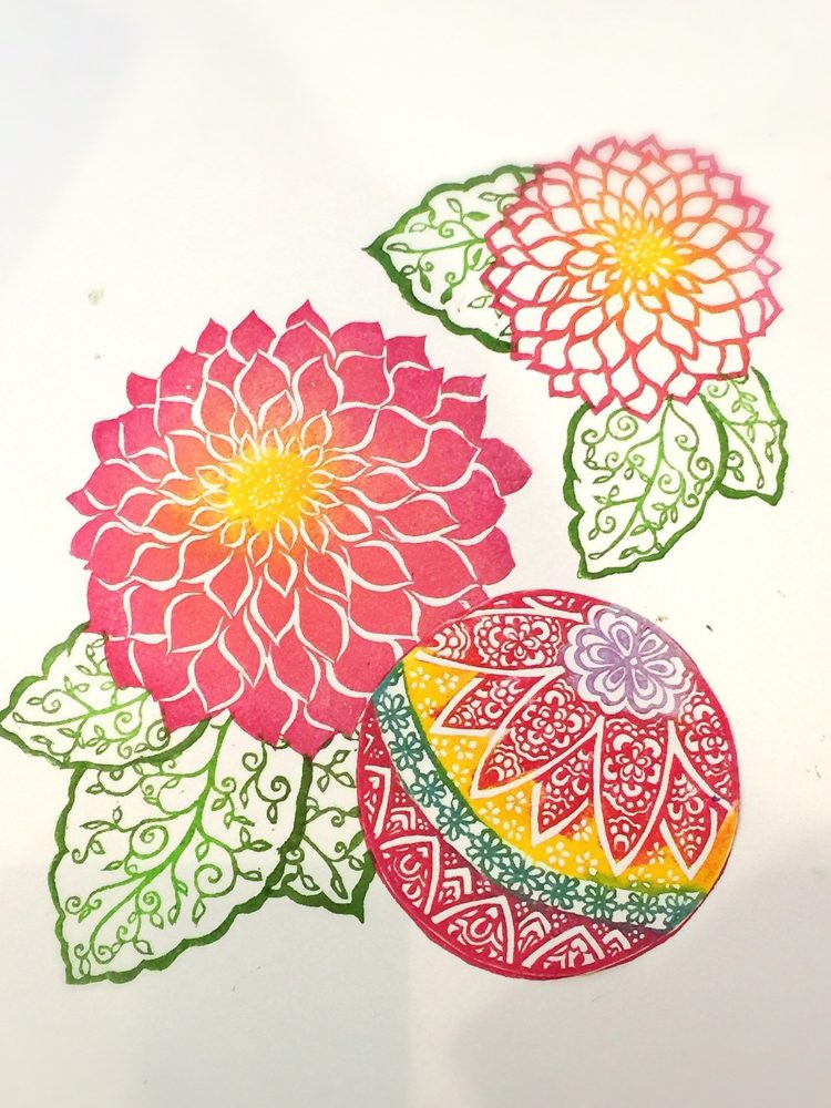 モチーフを輝かせる柄ってすごい細かく繊細で素敵ですね。教室では初級は基本のラインの掘り方、カッターナイフとか彫刻刀の使い方の基礎を覚える。