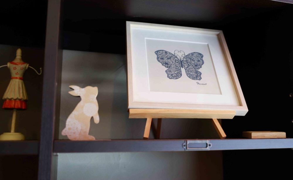 描くときには花とか葉っぱのモチーフを描いては消して描いては消しての繰り返しだそうです。一つの作品はデザイン構想から製作まで長い時間が費やされます。