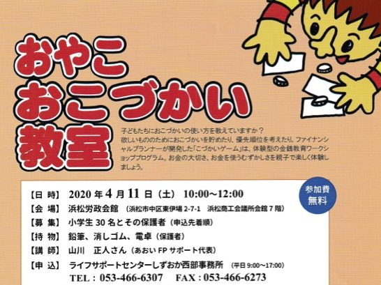 - おやこおこづかい教室, ライフサポートセンターしずおか, 山川正人, 浜松労政会館