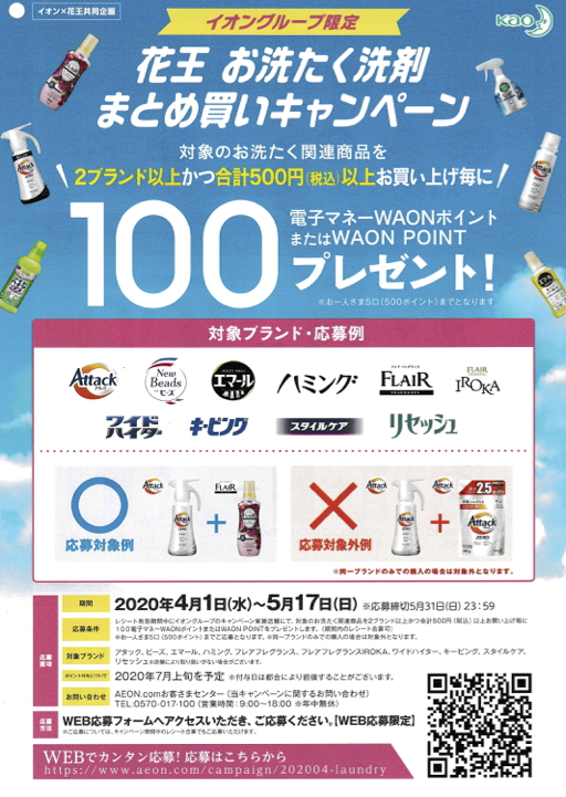 - KAO, お洗たく洗剤まとめ買いキャンペーン, イオングループ, 花王