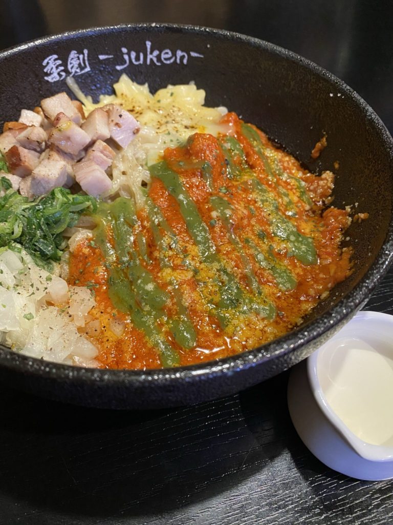 柔剣にはラーメンもありますが、やはりオススメはまぜそばです!