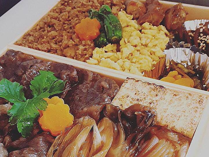 ●国産牛霜降りすき焼き弁当/・サラダ付き 1900円 ・サラダなし 1600円