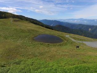 標高2,000mを超える高原牧場に、ポツンと現れる天空の池がSNSを中心に
