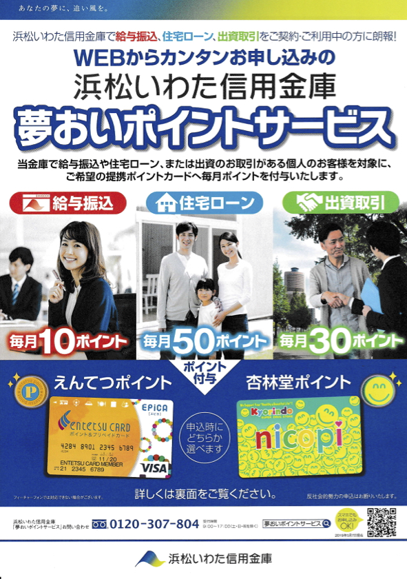 - えんてつポイント, 夢おいポイントサービス, 杏林堂ポイント, 浜松いわた信用金庫