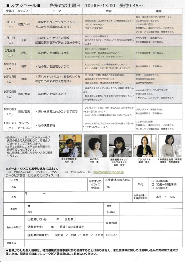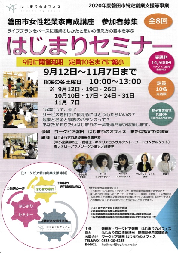 磐田市女性起業家育成講座「はじまりセミナー」参加者募集!