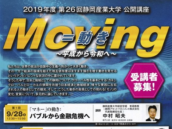 2019年度 第26回静岡産業大学 公開講座「Moving = 動き ~平成から令和へ~」