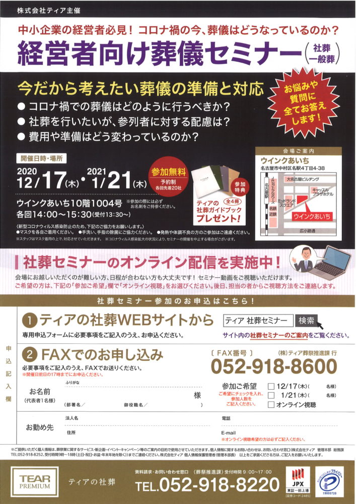 会場:ウィンクあいち10階1004号 ※参加の際には必ずお名刺をご持参ください