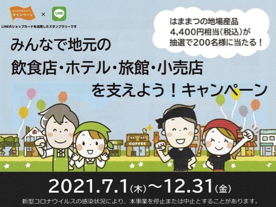 参加条件:浜松地域の飲食店、ホテル・旅館、小売店(地元資本の事業所が対象)※LINEのショップカード機能を活用したスタンプラリーとなるため、スマートフォンの操作ができる店舗限定とさせていただきます。
