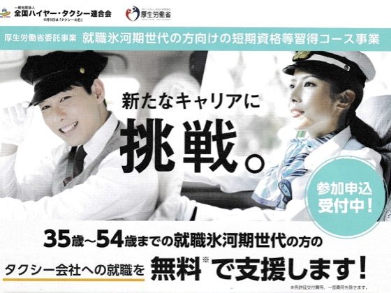 35歳〜54歳までの就職氷河期世代の方のタクシー会社への就職を無料で支援します!