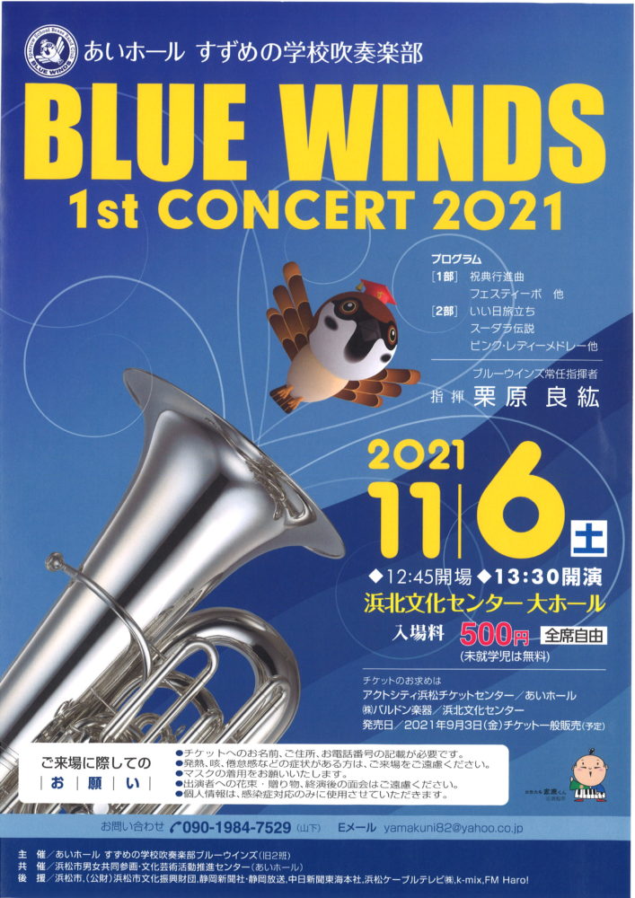 - あいホール すずめの学校吹奏楽部 BLUE WINDS 1st CONCERT 11/6(土)浜北文化センターで開催 はコメントを受け付けていません