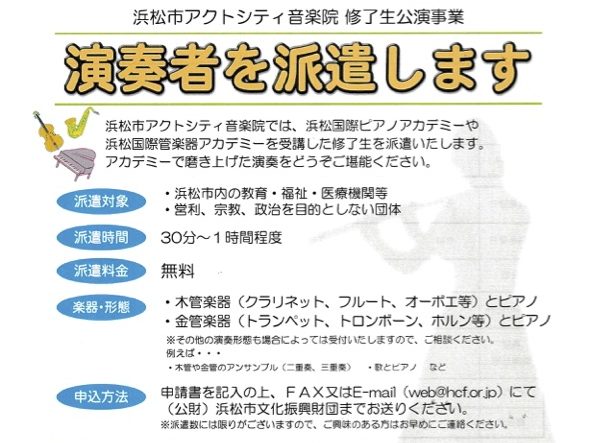 申請書を記入の上、FAXまたはEmailにて浜松市文化振興財団までお送りください。