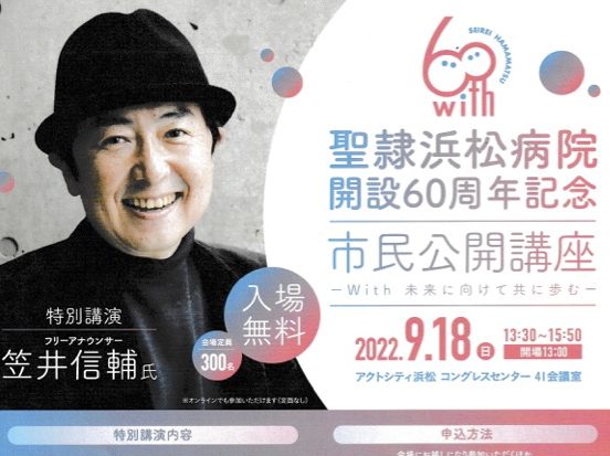これを記念して、聖隷浜松病院開設60周年記念市民公開講座を開催します。