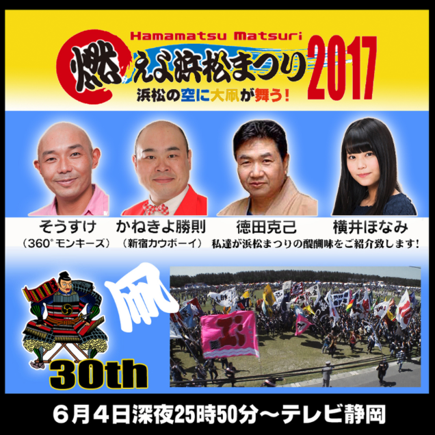その模様を取材して放送している番組が「燃えよ浜松まつり」です。浜松まつりに参加されている方なら一度は観たことはあるのではないでしょうか。そんな今年で30周年の「燃えよ浜松まつり2017」が放送されます。