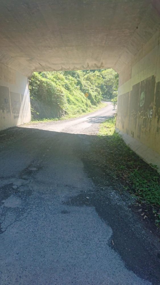 道沿いをひたすら歩いて行きますとトンネルが見えて来ます。