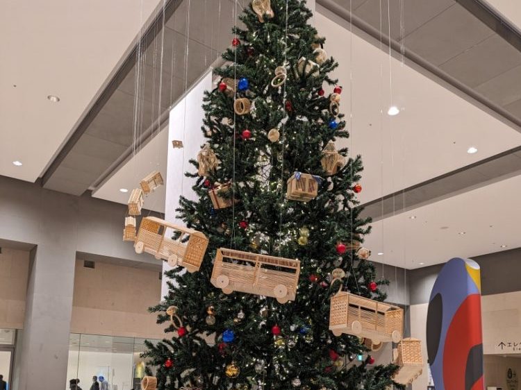 グランシップ冬のおくりもの2023 駿河竹千筋細工のクリスマスツリー展示中