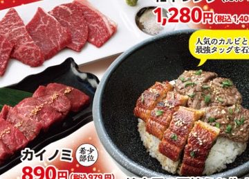 普段のメニューではお目にかかれない希少部位の【カイノミ】や牛カルビとうなぎを贅沢に使用した【石焼うな牛カルビ】もご用意!