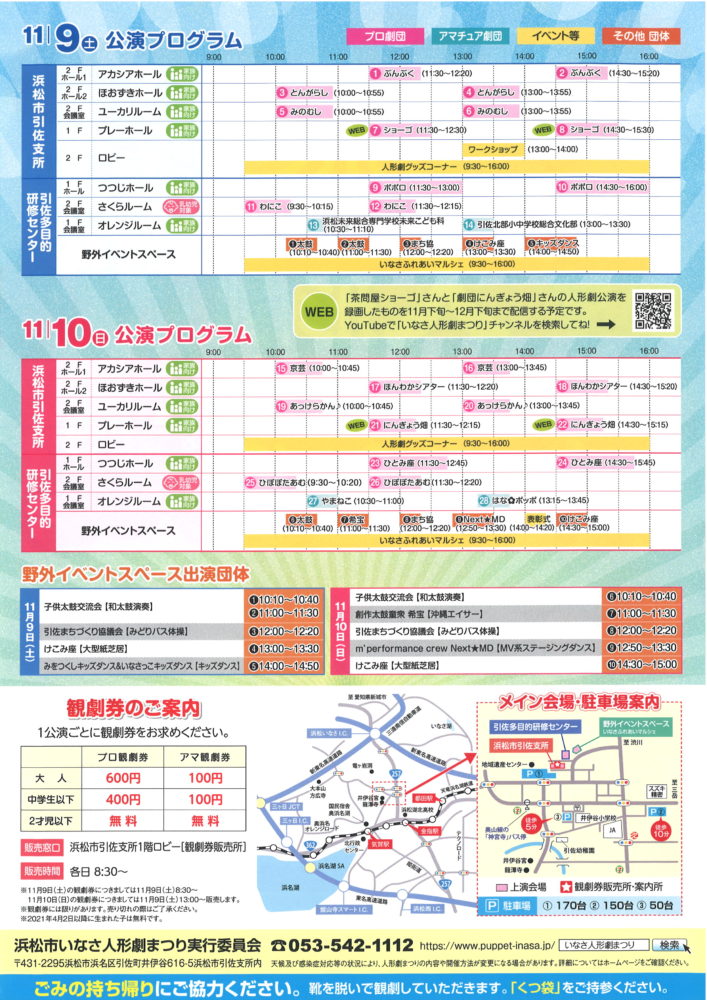 お問い合わせ先:053-542-1112(浜松市いなさ人形劇まつり実行委員会)