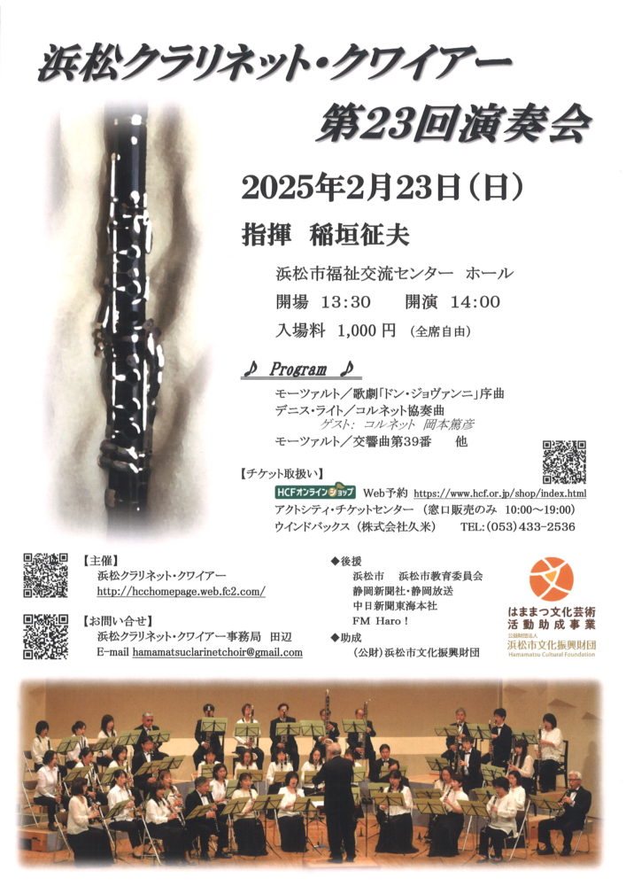 浜松クラリネット・クワイアー第23回演奏会 2/23(日)浜松市福祉交流センター