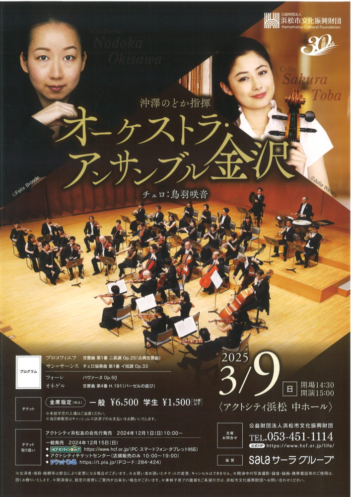 オーケストラ・アンサンブル金沢 3/9(日)アクトシティ浜松