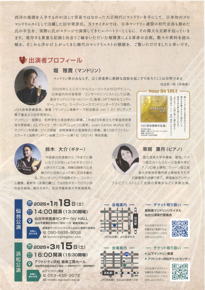 堀雅貴マンドリンリサイタル ~田中常彦の生涯~@アクトシティ浜松音楽工房ホール