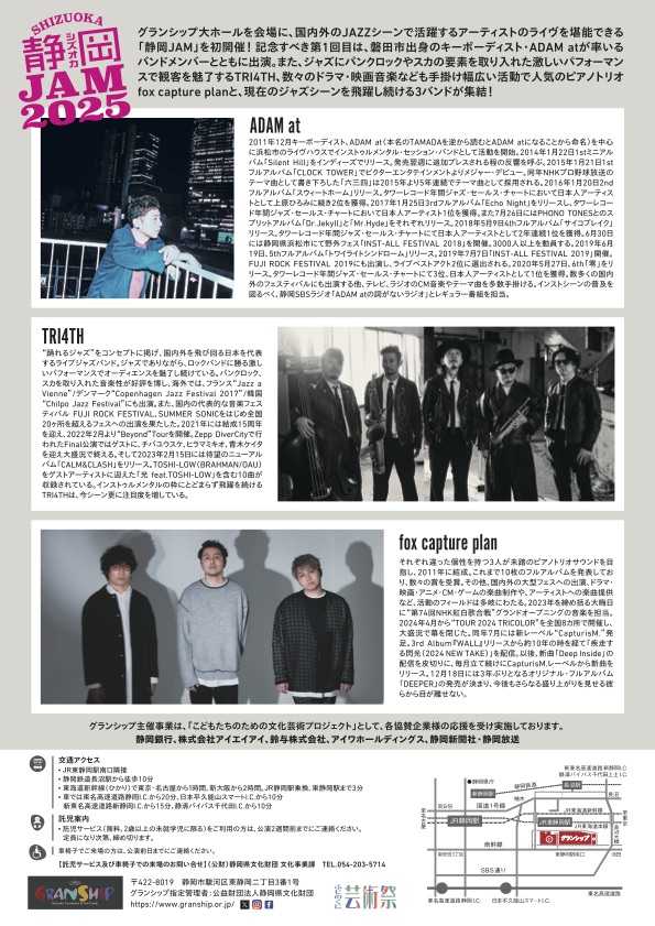 静岡JAM2025 新しいジャズシーンで世界を魅了するアーティストがグランシップに登場!