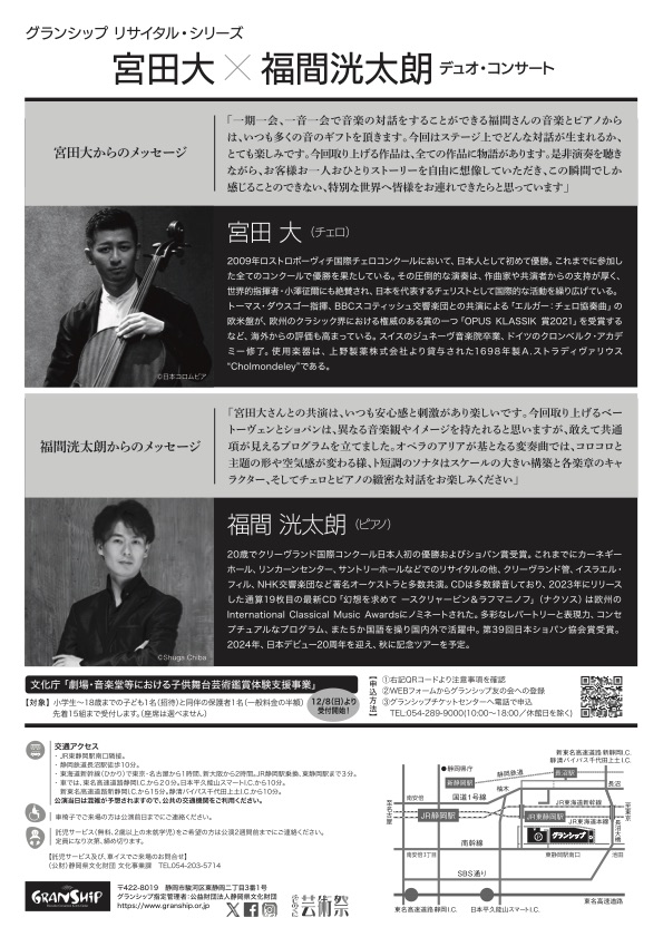 グランシップ リサイタル・シリーズ 宮田大×福間洸太朗 デュオ・コンサート