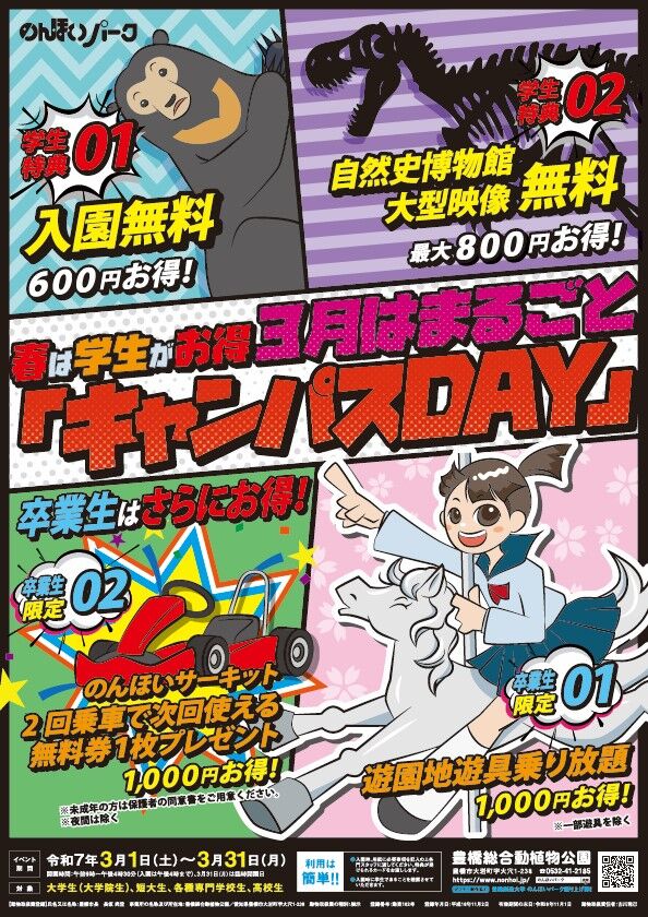3月は毎日学生入園無料!のんほいパーク「キャンパスDAY」