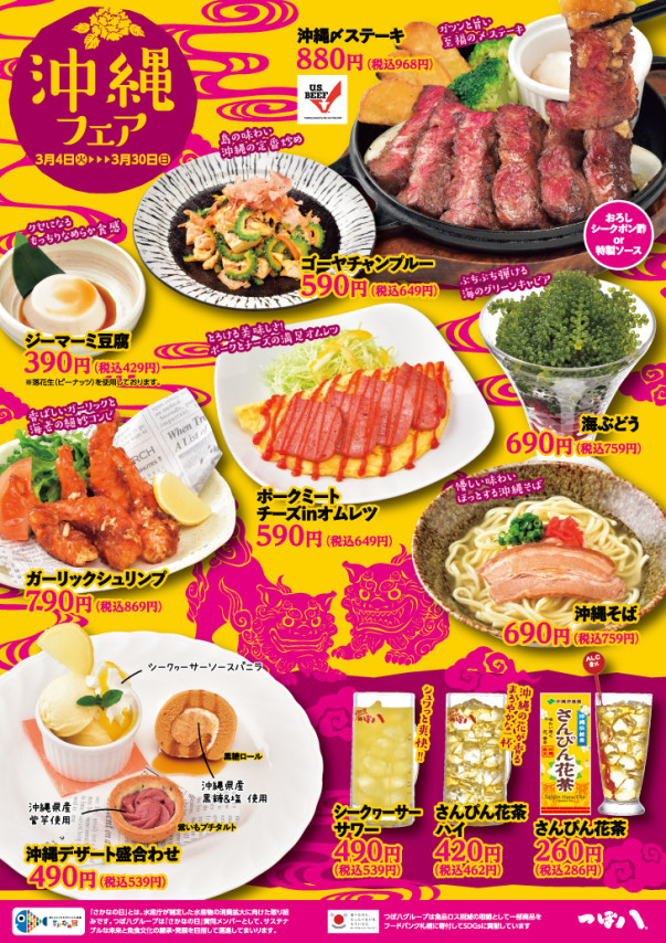 この機会に、ぜひつぼ八浜松駅前店で、 沖縄の味をたっぷりとお楽しみください!