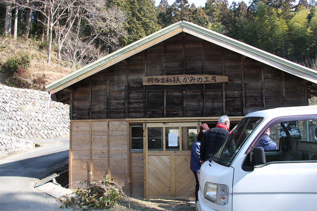 NPO法人元気里山は、「阿多古和紙」を次代につなげる場のひとつとして、【かみの工房】を天竜区阿多古地区に昨年開設しました。元気里山の田中さんのお話によると、この施設は地域の人たちとも繋がって、阿多古和紙の伝統的な手仕事の良さや面白さを共有する場として活用されていくそうです。将来的には外からも来てもらうような「紙漉き体験」等様々な計画があり、今後どのように進化していくのか楽しみです。