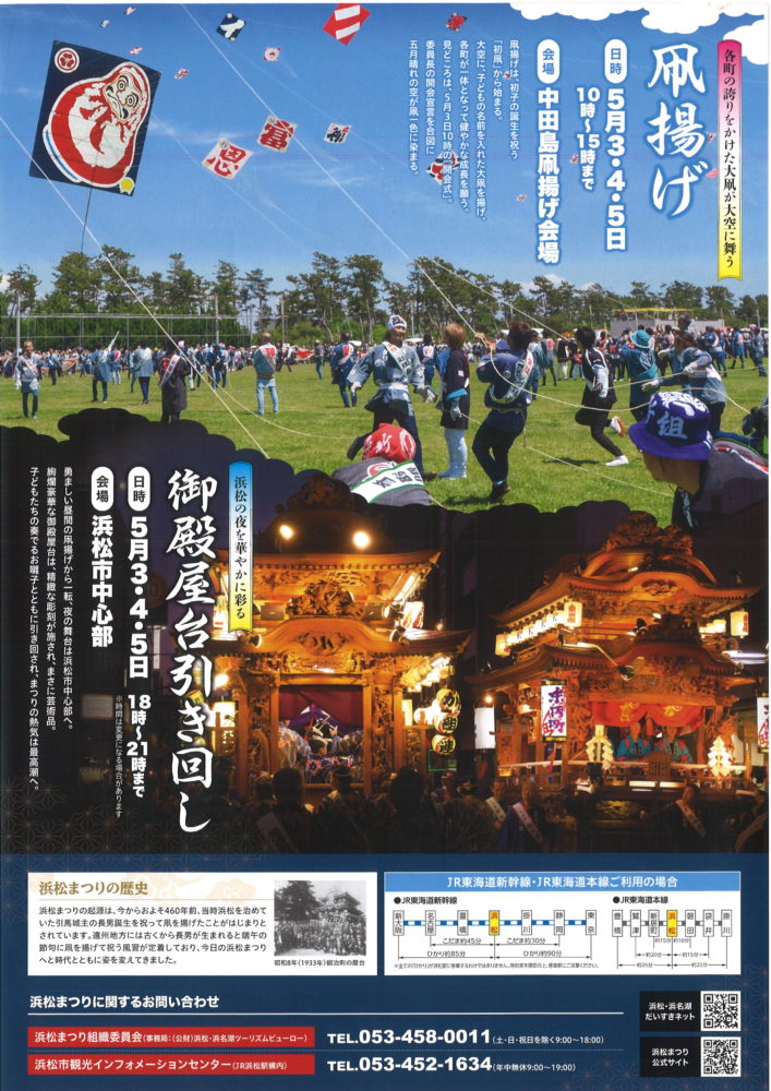 浜松まつり組織委員会 TEL.053-458-0011(土・日・祝を除く9:00〜18:00)