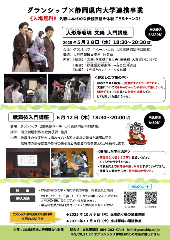 グランシップ×静岡県内大学連携事業「人形浄瑠璃 文楽」入門講座