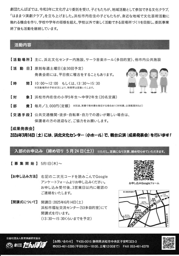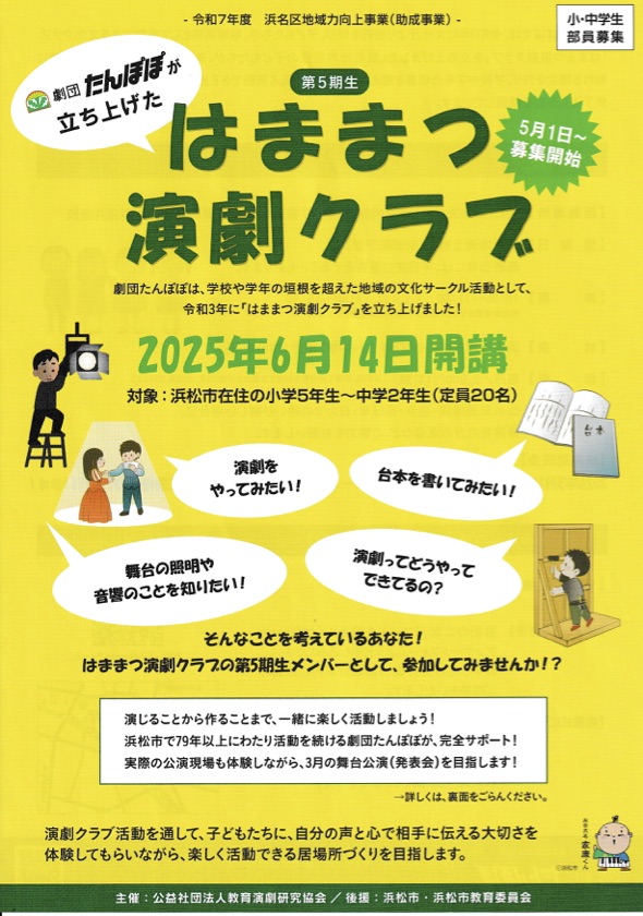 劇団たんぽぽが立ち上げた「はままつ演劇クラブ」第5期生 小中学生部員募集!