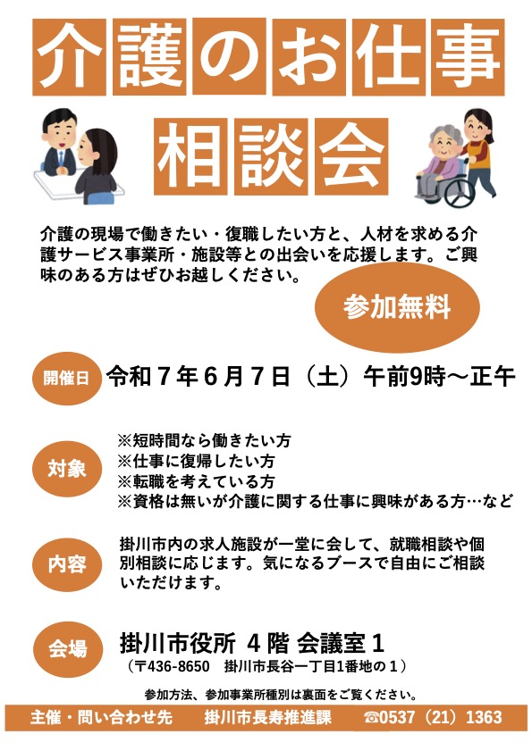 相談会では、市内の求人施設の職員が一堂に会し、就職相談や個別相談を実施します。