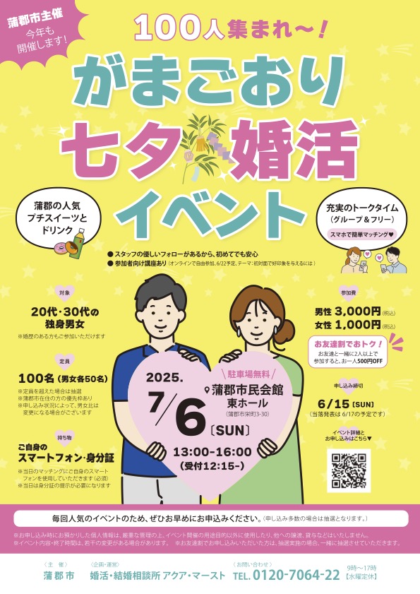 蒲郡市「100人集まれ!がまごおり七夕婚活イベント」参加者募集