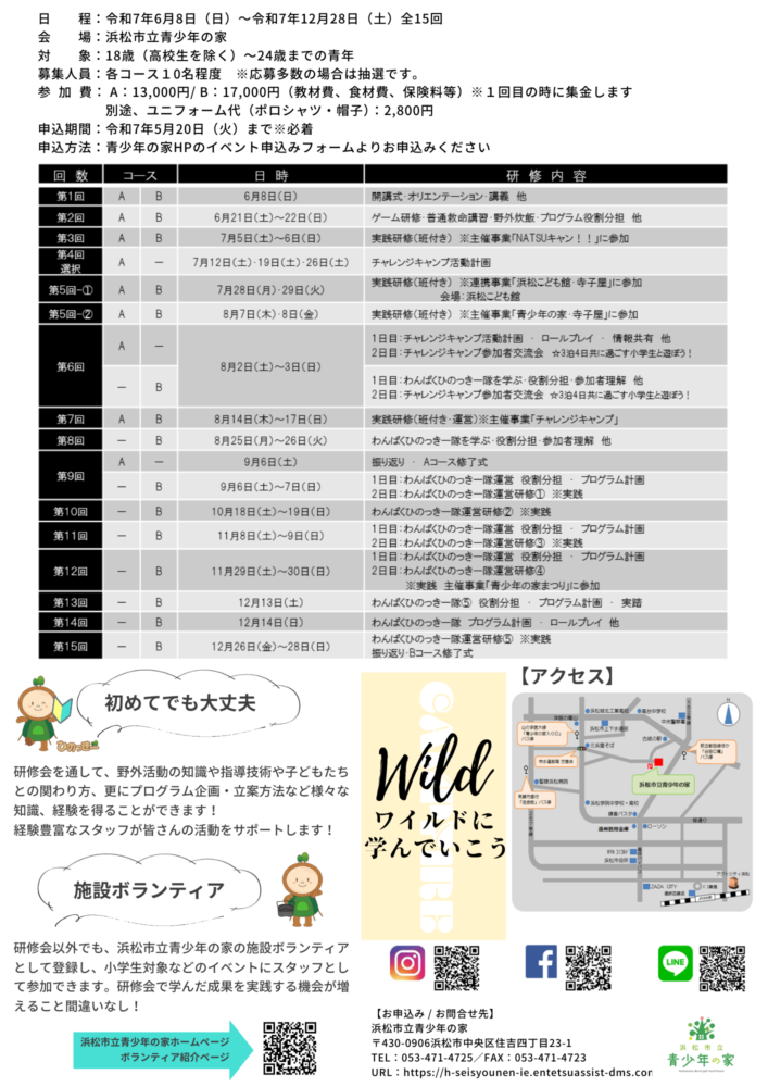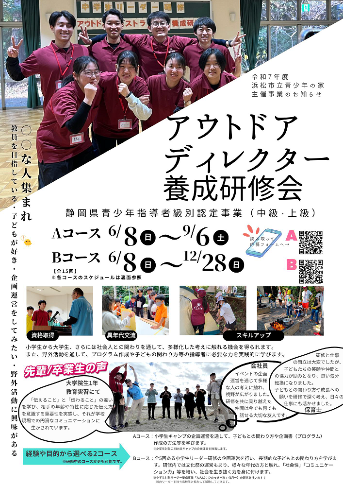 - アウトドアディレクター, 浜松市立青少年の家, 養成研修会