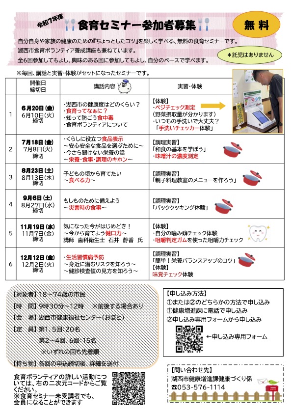 自分自身や家族の健康のための『ちょっとしたコツ』を楽しく学べる、無料の食育セミナーです。
