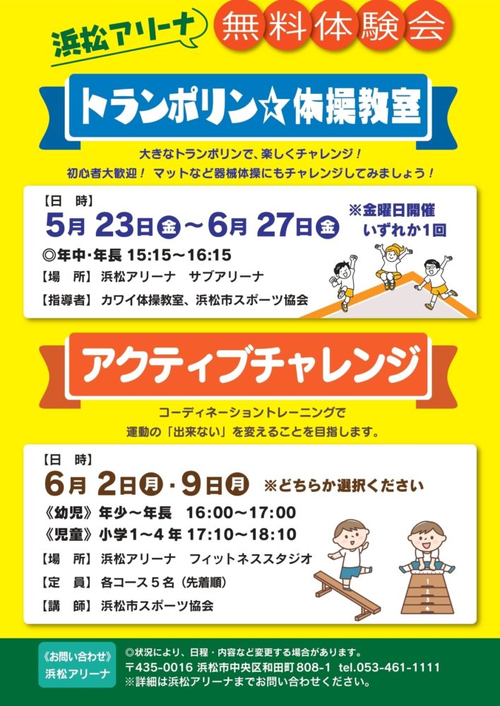 浜松アリーナ無料体験会(トランポリン体操教室、アクティブチャレンジ)