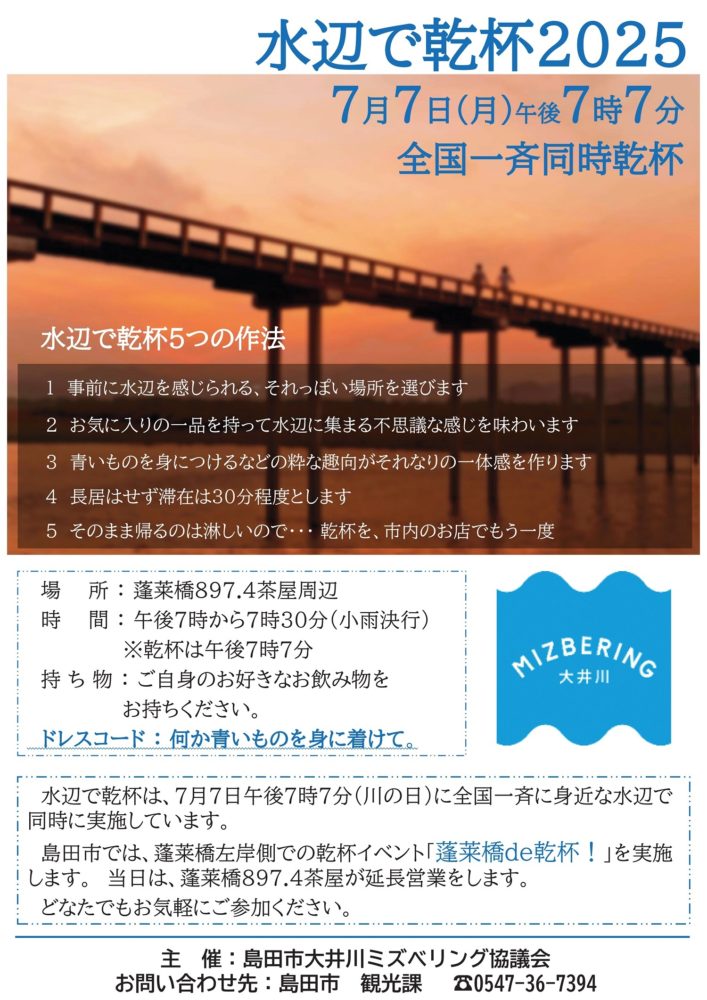 日時:令和7年7月7日(月)午後7時から7時30分頃まで(小雨決行) ※乾杯のカウントダウンは、午後7時7分です。