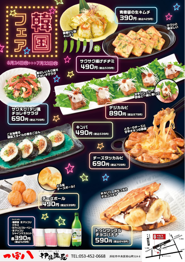 6月24日(火)から7月22日(火)まで、つぼ八 浜松駅前店で韓国グルメ満載の「韓国フェア」開催中!