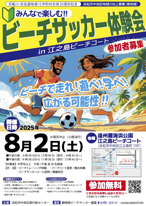 浜松市 みんなで楽しむ!ビーチサッカー体験会 8/2(土)