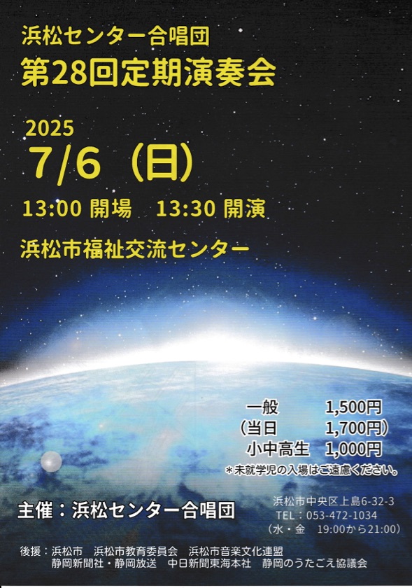 - 定期演奏会, 浜松センター合唱団, 浜松市福祉交流センター