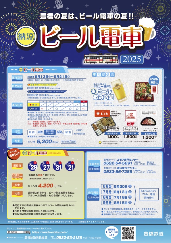 路面電車に揺られながら電車内で冷たいビールを楽しめる豊橋鉄道夏のイベント電車です。