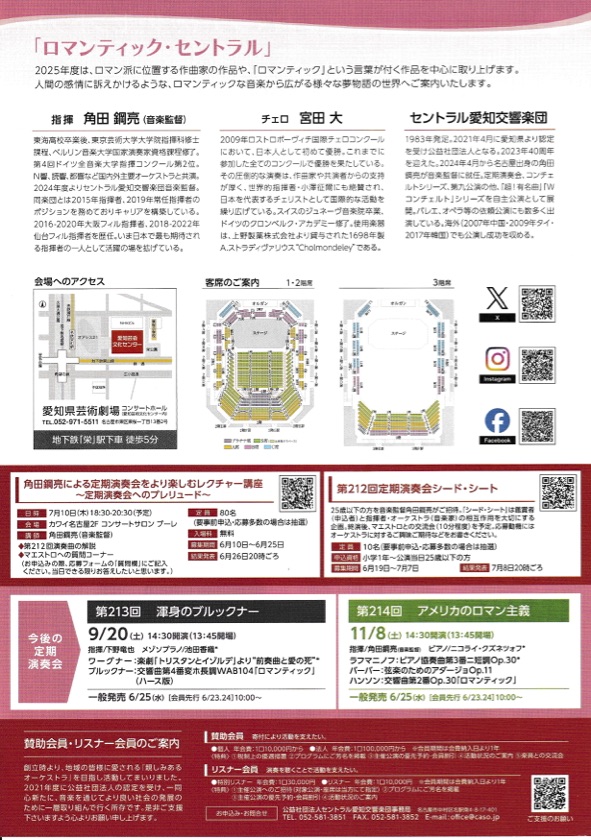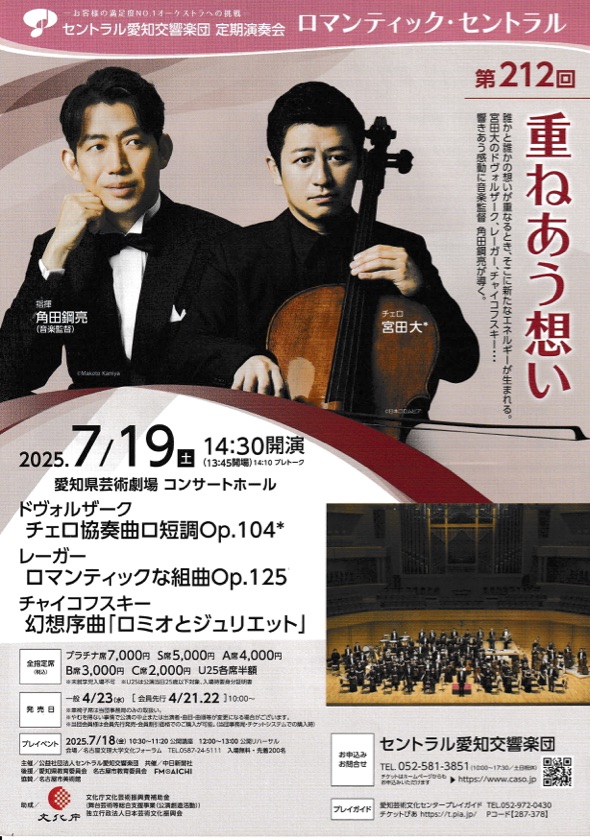 セントラル愛知交響楽団 定期演奏会 ロマンティック・セントラル 第212回「重ね合う想い」