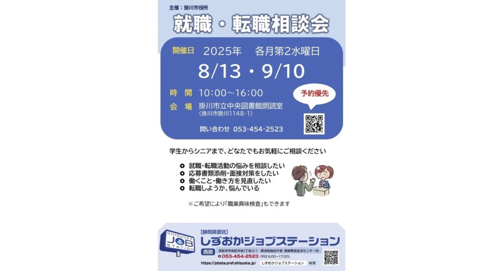 - 掛川市 就職・転職相談会 8/13・9/10 はコメントを受け付けていません