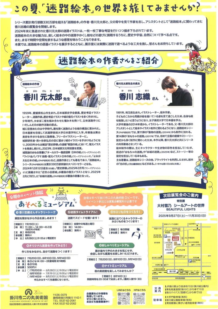 シリーズ累計発行部数330万部を超える「迷路絵本」の作者・香川元太郎と、父の背中を見て作家を志し、アシスタントとして「迷路絵本」に関わってきた香川志織の展覧会を開催します。
