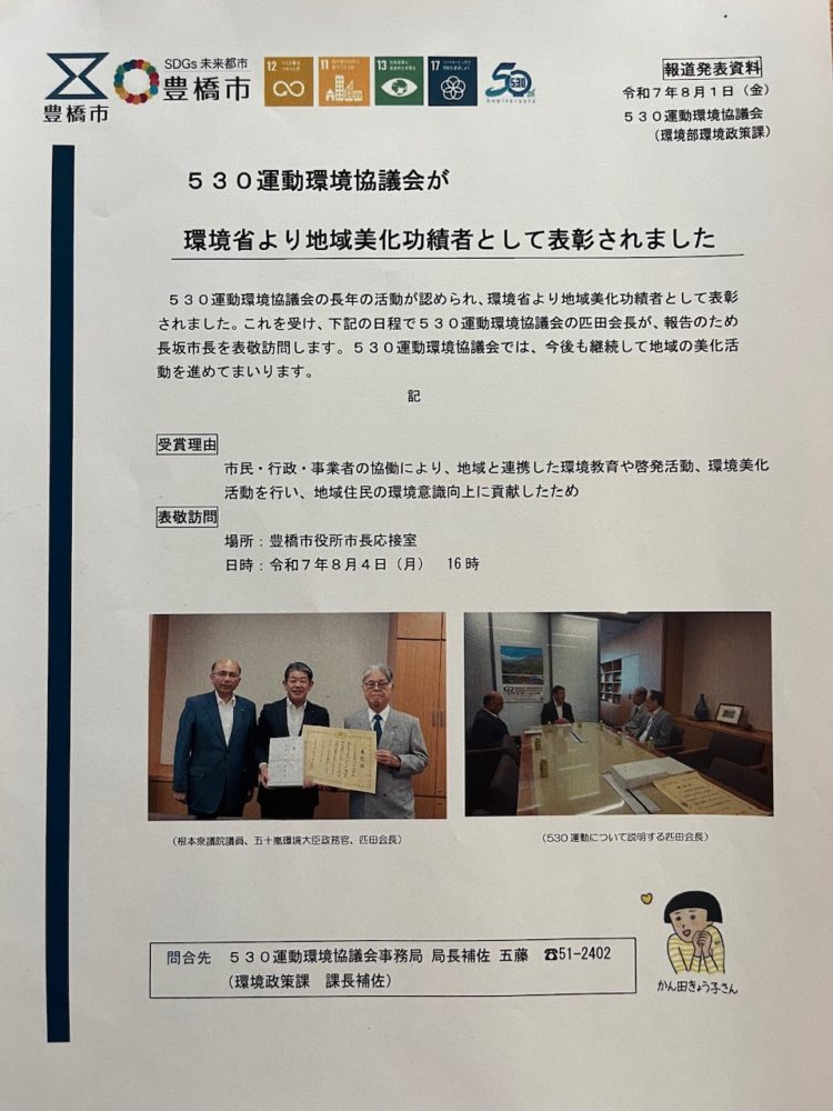 しかしながら、そんな日頃からの活動を評価していただけたのか、この度530運動が環境大臣賞を受賞しました!!
